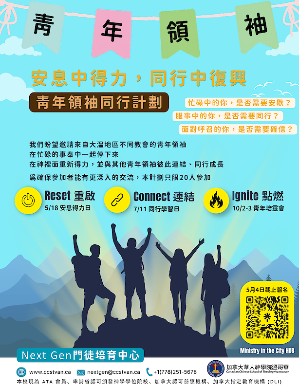 在大溫地區,許多華人教會的青少年與校園事工,都是由青年領袖在默默承擔。他們投入時間、心力與情感,陪伴青少年成長、傾聽生命故事、帶領聚會與活動。