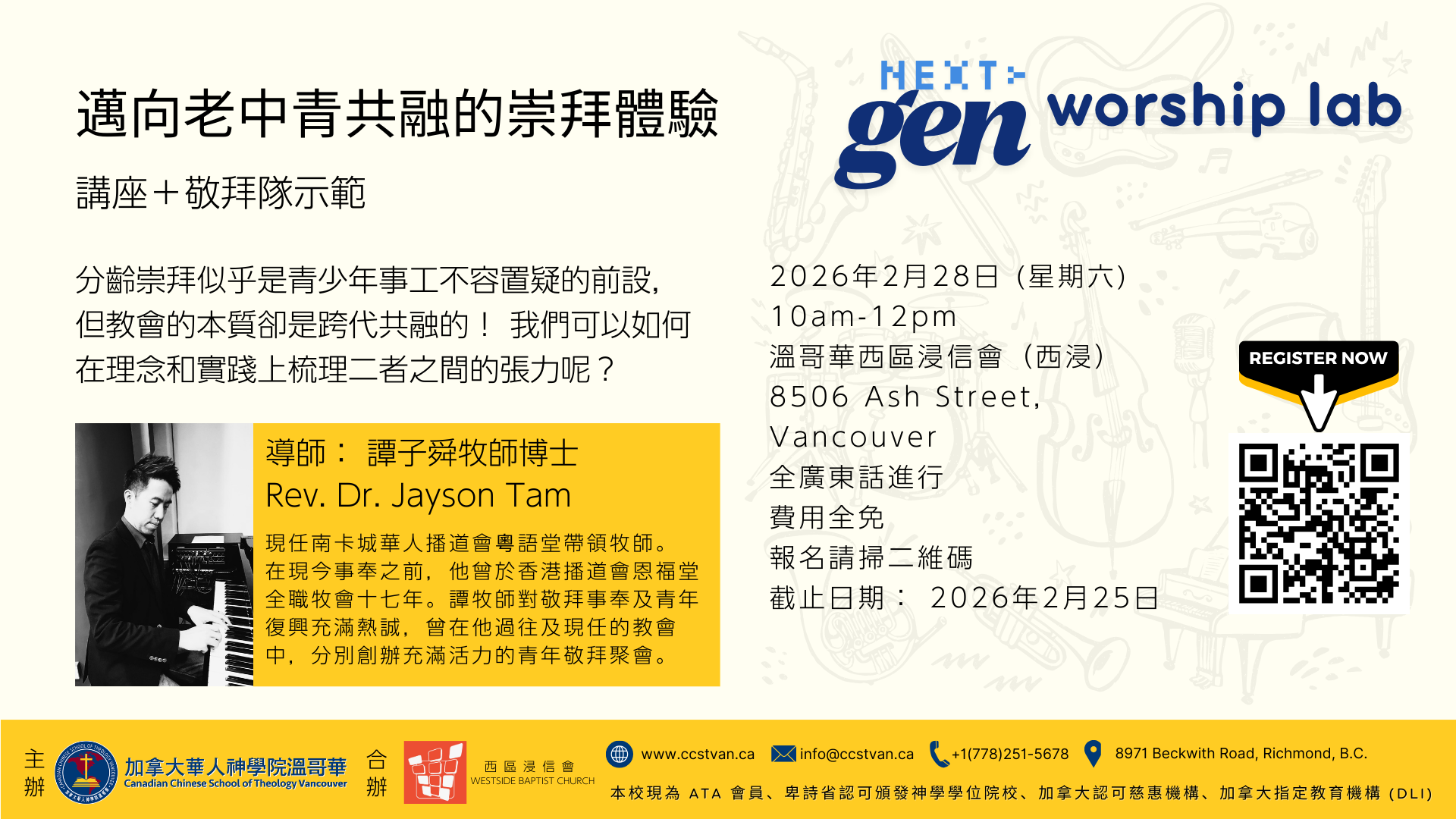 *Pastor Jayson亦即將在2026年2月23-27日教授為期一週的密集課程【新生代的敬拜】