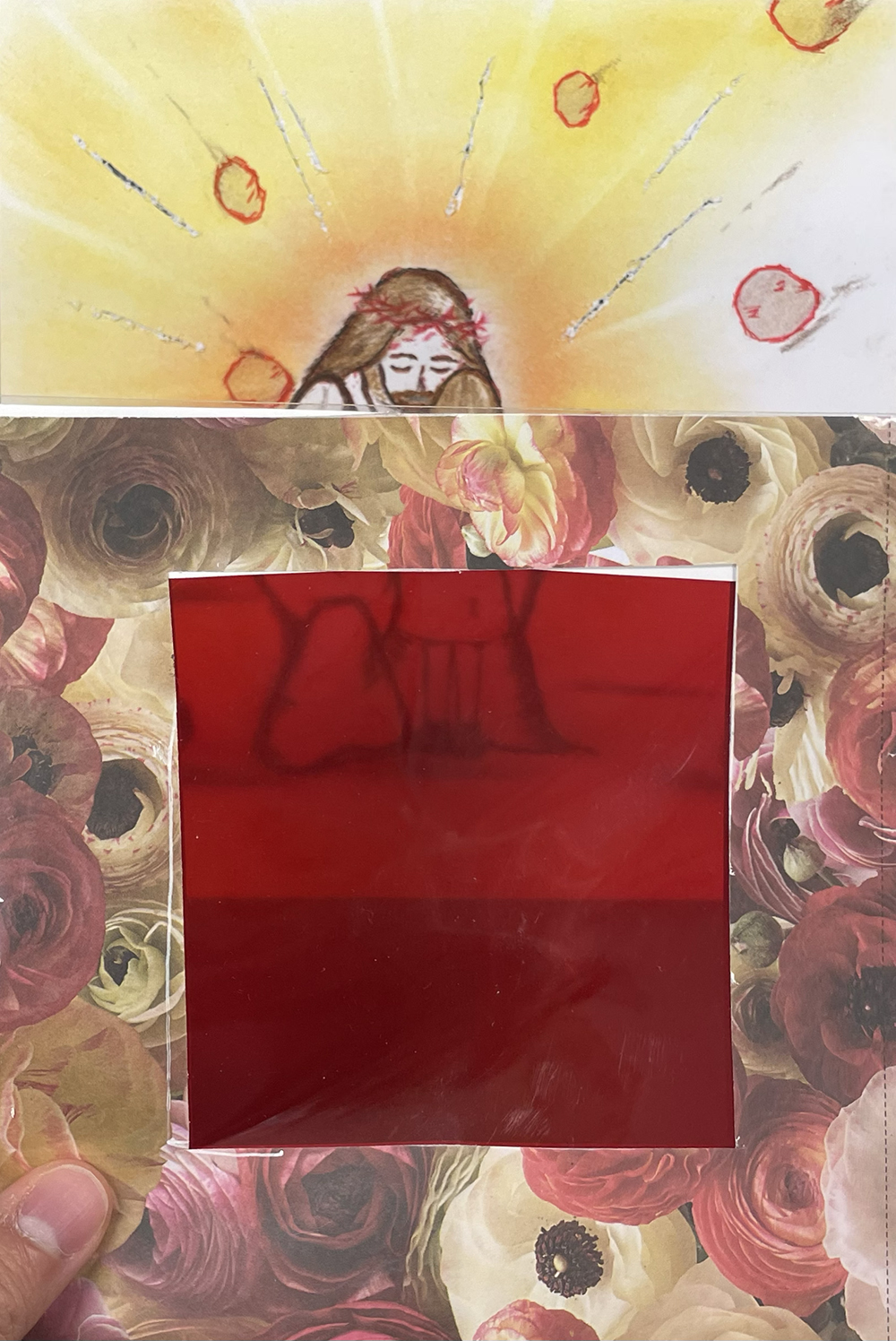 第二步:戴上紅濾鏡觀看,體會畫面轉化與主耶穌光芒的出現。