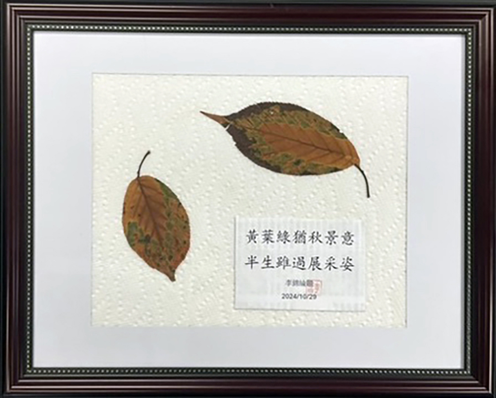 這幅名為《看不見的看得見》的藝術作品,運用線條、光芒和紅濾鏡表達「破碎中的恩典」主題。畫中的交錯線條象徵人生的脆弱與傷痕,背後透出的光芒則是神在軟弱中顯現的能力。紅濾鏡為作品增添靈性層次 -- 觀看者戴上濾鏡後,畫中傷痕消失,顯現出基督的光,象徵以信仰視角看見隱藏的恩典與守護。