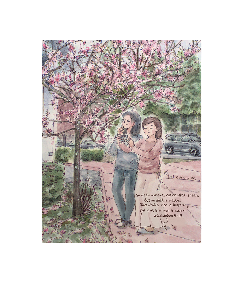 玉蘭花雖美,卻只盛開一時。雖相機拍攝作紀念,但似乎都是抓不住的影像。不過,我們的身體縱使會朽壞,卻不用覺得傷心害怕,且放眼於永恆,期待主再回來,並領受主所賜的榮耀與基業。「原來我們不是顧念所見的,乃是顧念所不見的,因為所見的是暫時的,所不見的是永遠的。」林後4:18